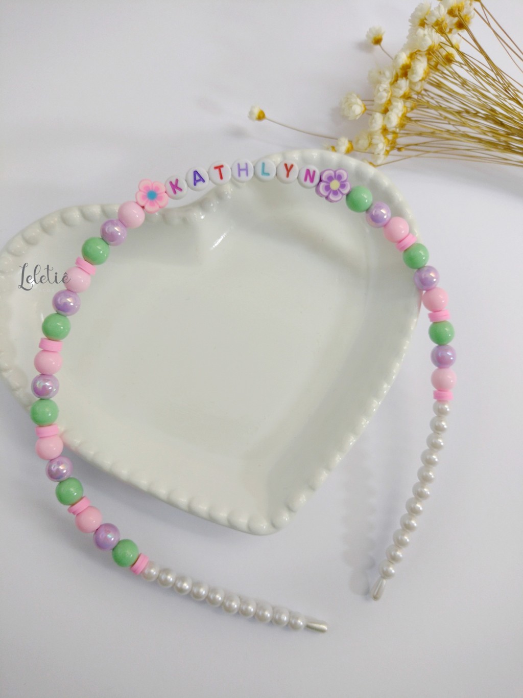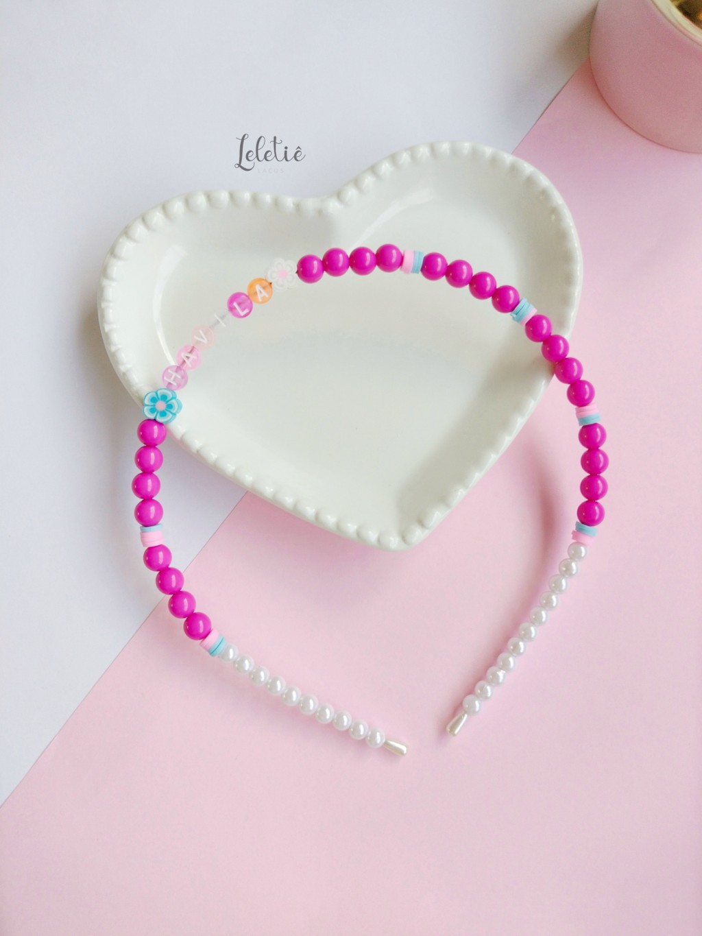 Tiara com contas coloridas e nome personalizado. (Escrever nome na observação)