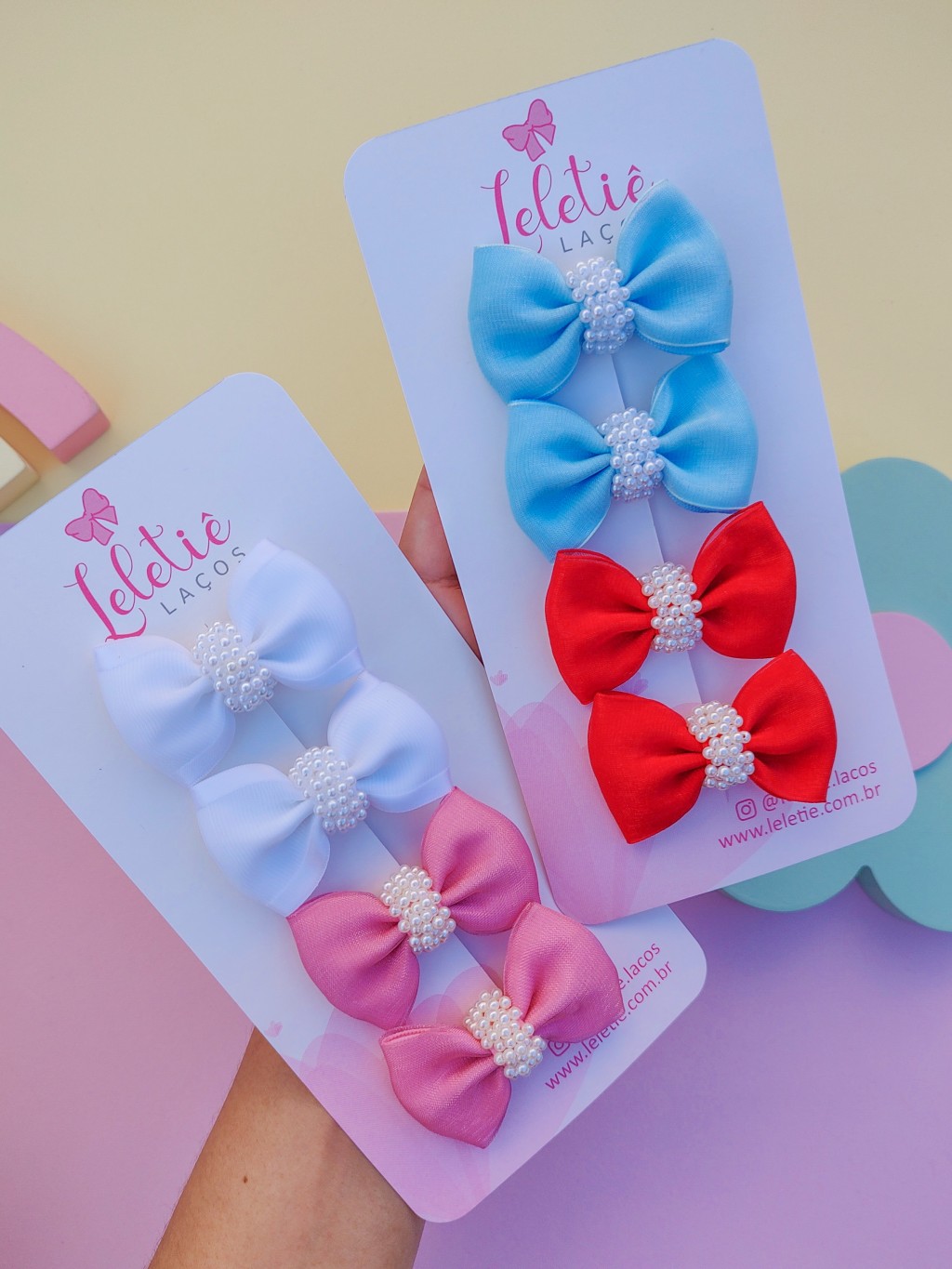 Par de Organza e com miolo bordado com chuva de pérolas.