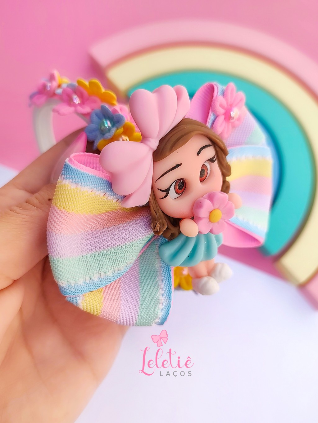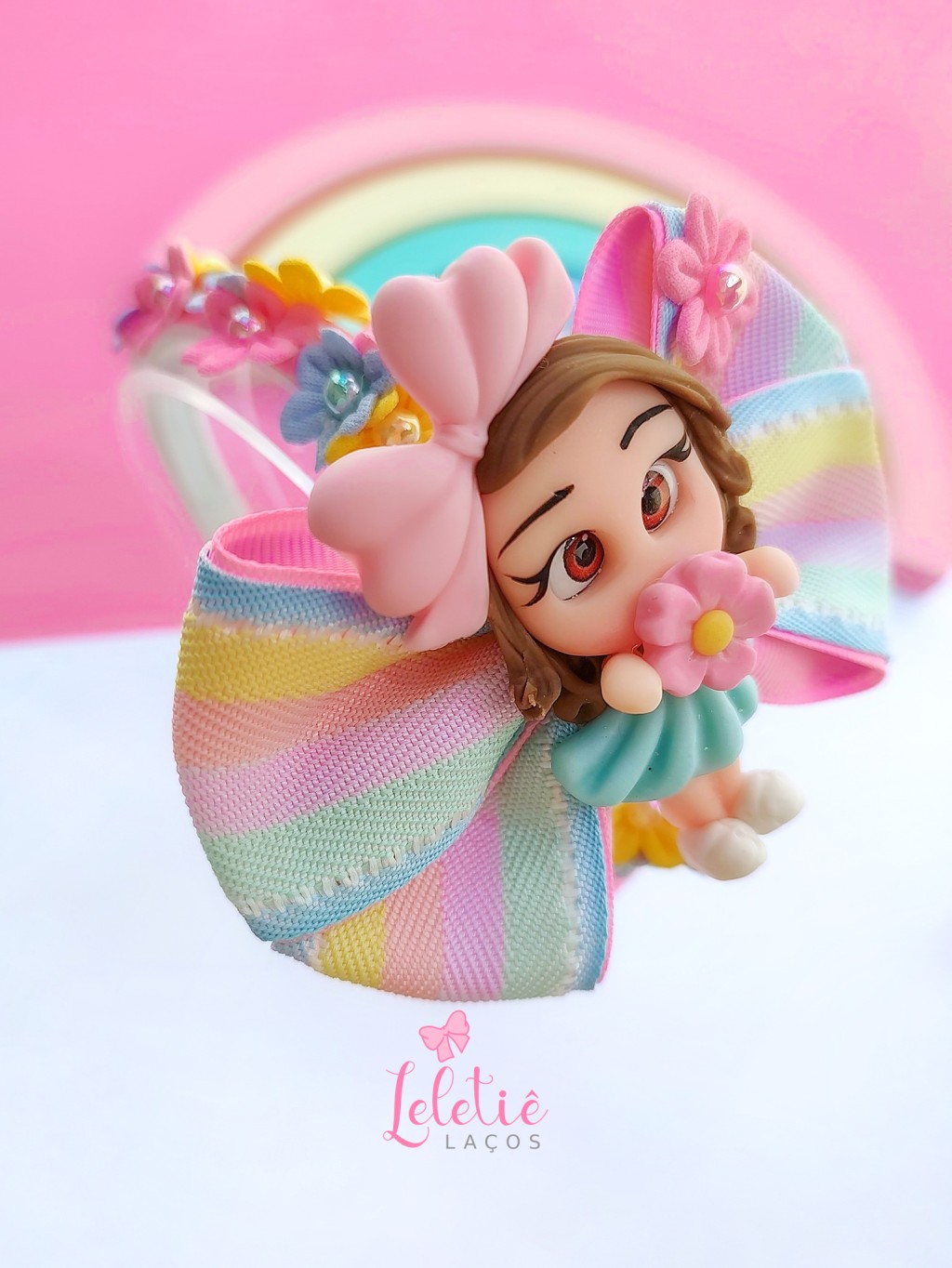 Tiara com flores 3D, pérolas e menina de Biscuit.