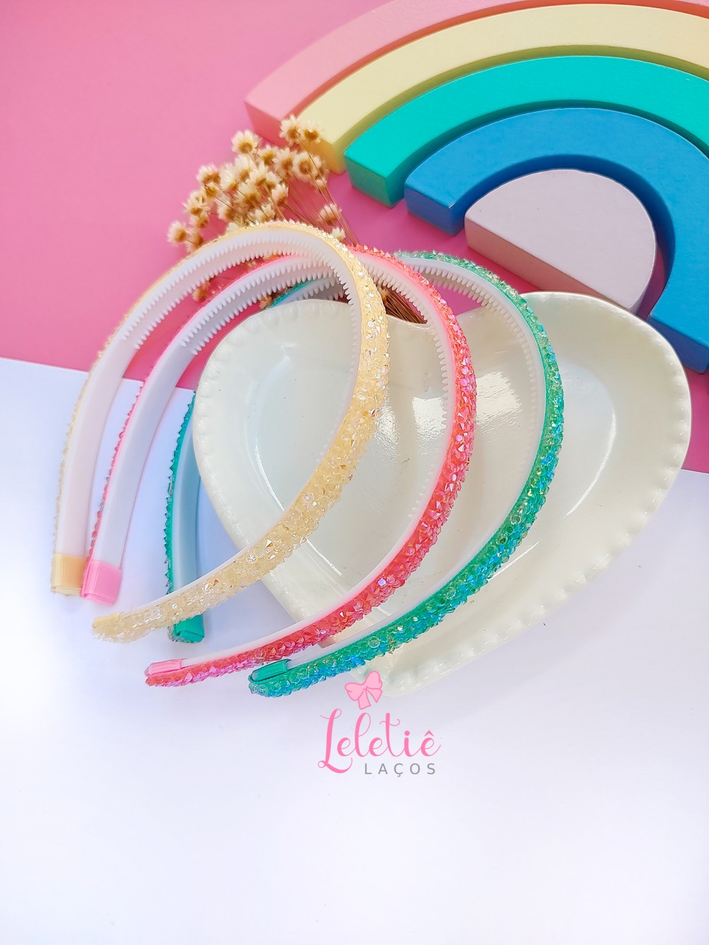 Tiara com manta de Cristal, serve para crianças a partir de 2 anos até adulto.