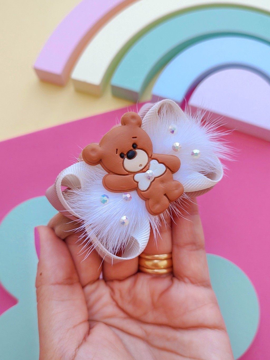 Faixinha tamanho P com (7 cm) aplique de ursinho, pompom e strass