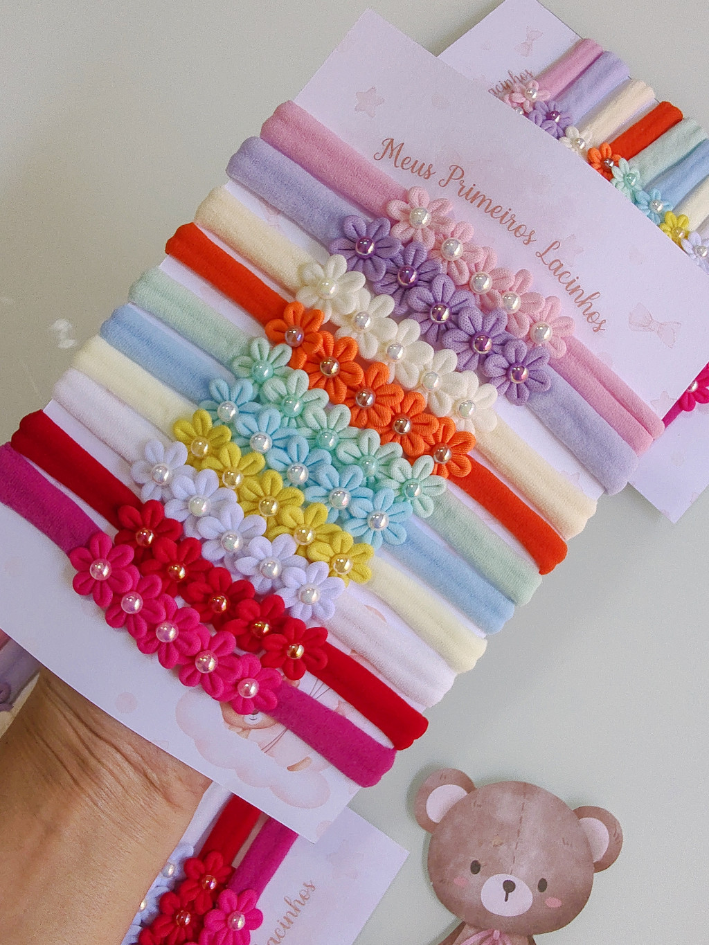 Kit com 10 faixinhas com florzinhas em tecido. (Cores da foto)